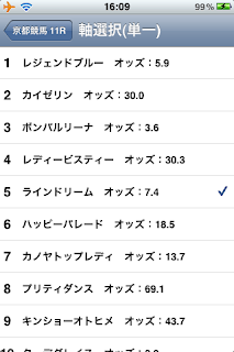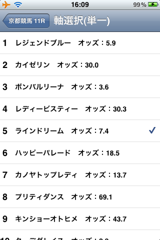 このリストには投票可能レースのみが表示されるので、締め切ったレースは表示されません。